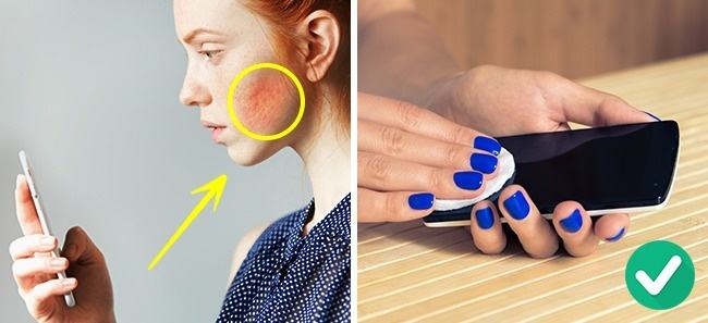 Màn hình điện thoại là nơi chứa lượng lớn vi khuẩn và bụi bẩn. Thói quen nghe hay áp điện thoại lên mặt cũng khiến lượng vi khuẩn này xâm nhập lên da gây ra mụn. Vệ sinh màn hình bằng khăn sạch thường xuyên sẽ giúp bạn hạn chế được tối đa tình trạng này đấy!